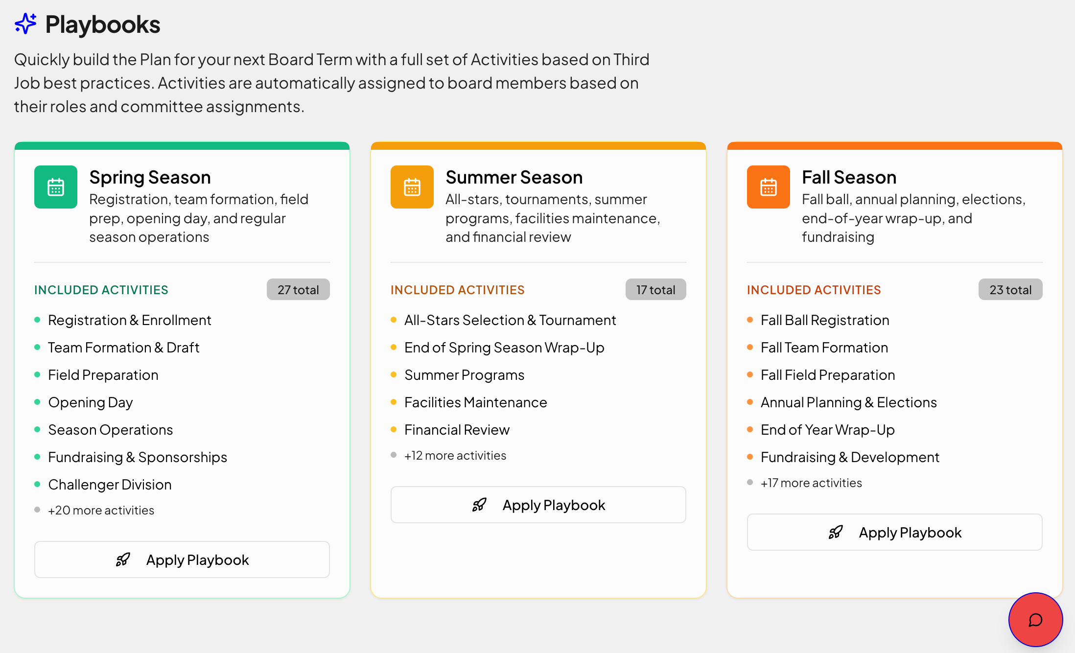 When a board starts a new term, it can select from pre-built Playbooks that automatically create the entire plan of activities for the board’s next term.
